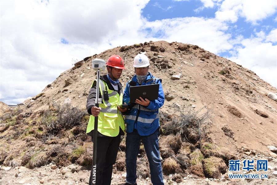 7月1日16时,在高海拔宇宙线观测站,科研人员在进行探测器定位。 新华社发(罗绒邓珠 摄)