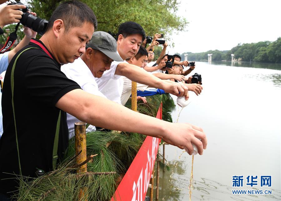 7月1日,福建籍红军后人在广西兴安县界首镇湘江江边向红军烈士敬献从家乡带来的酒。 当日,再走长征路的记者团、红军后人的代表以及当地党员干部一行在湘江岸边的广西兴安县祭奠红军烈士。1934年底的湘江战役,是红军长征出发以来最壮烈的一仗,也是关系红军生死存亡的关键一仗。 新华社记者 周华 摄