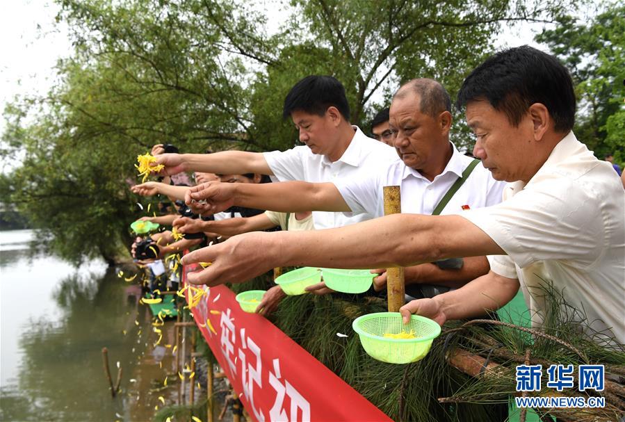 7月1日,福建籍红军后人在广西兴安县界首镇湘江江边撒花祭奠红军烈士。 当日,再走长征路的记者团、红军后人的代表以及当地党员干部一行在湘江岸边的广西兴安县祭奠红军烈士。1934年底的湘江战役,是红军长征出发以来最壮烈的一仗,也是关系红军生死存亡的关键一仗。 新华社记者 周华 摄