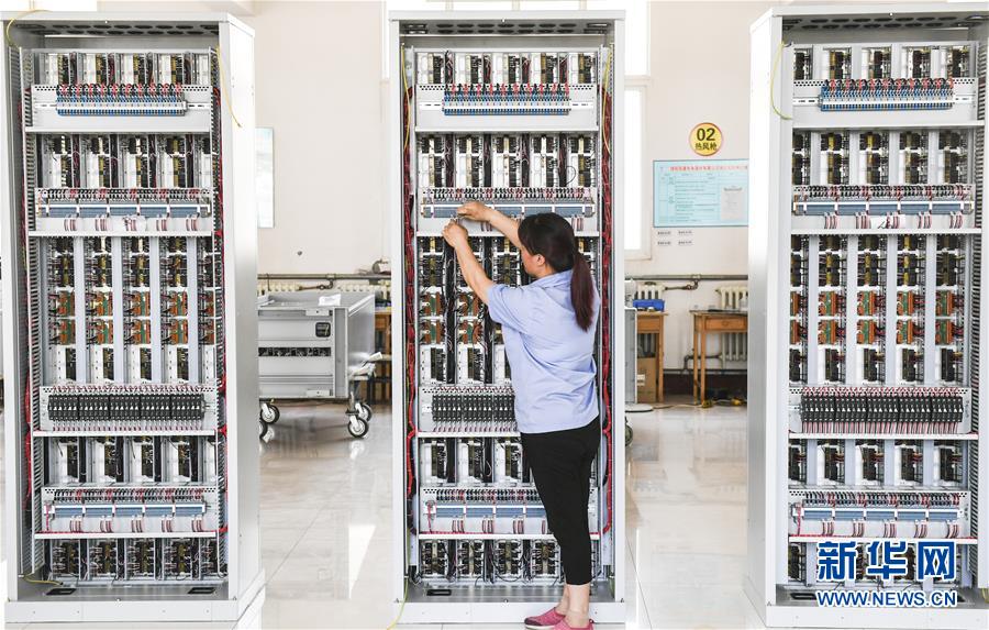7月2日,河北省饶阳县一家铁路配件企业的工人在验检轨道组合柜配线。 近年来,河北省饶阳县充分发挥国内重要铁路配件生产基地优势,引导中小型企业通过引进新技术和新设备,提高产品科技含量和市场竞争力。目前,该县铁路配件生产企业已发展到34家,产品种类涵盖普铁、高铁、地铁、城市轻轨用扼流变压器、补偿电容、钢轨连接线等近百个品种,上千种型号。 新华社记者 李晓果摄