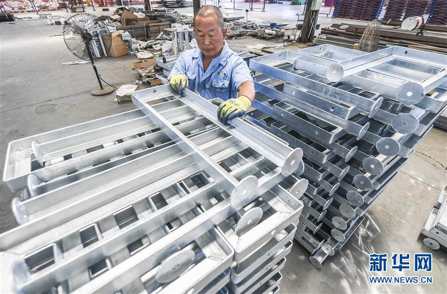 7月2日,河北省饶阳县一家铁路配件企业的工人在整理铁路支架成品。 近年来,河北省饶阳县充分发挥国内重要铁路配件生产基地优势,引导中小型企业通过引进新技术和新设备,提高产品科技含量和市场竞争力。目前,该县铁路配件生产企业已发展到34家,产品种类涵盖普铁、高铁、地铁、城市轻轨用扼流变压器、补偿电容、钢轨连接线等近百个品种,上千种型号。 新华社记者 李晓果摄