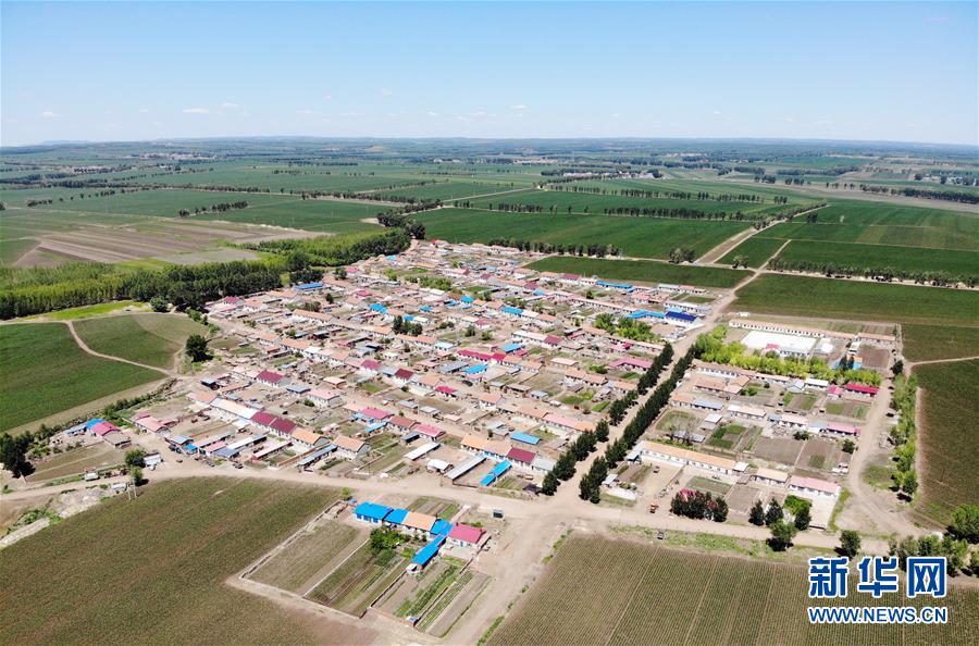 黑龙江省龙江县七棵树镇双龙村的部分房屋和耕地(6月20日无人机拍摄)。 新华社记者 王建威 摄