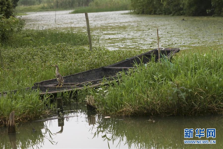 7月2日,一只水鸟立在下渚湖湖面的孤舟上,犹如把守城门的哨兵。