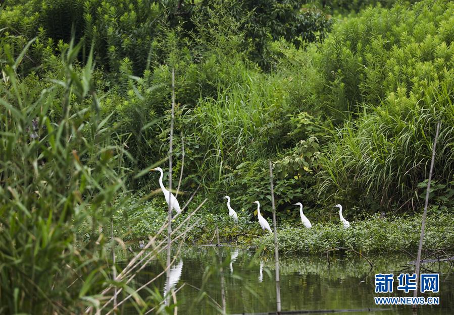 7月2日拍摄的一队行走的白鹭。 新华社记者 兰红光 摄