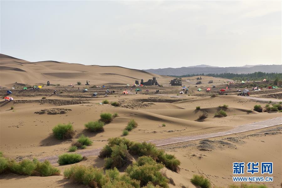 7月2日,在新疆鄯善县库木塔格沙漠,前来体验沙疗的游客络绎不绝,五彩缤纷的遮阳伞构成了沙漠又一道风景。 入夏以来,素有“火洲”之称的新疆吐鲁番开启高温模式,独特的气候给沙疗保健提供了特殊的环境,不少游客不惧高温炙热,到沙漠体验沙疗,享受大汗淋漓的快感。 新华社记者 丁磊 摄