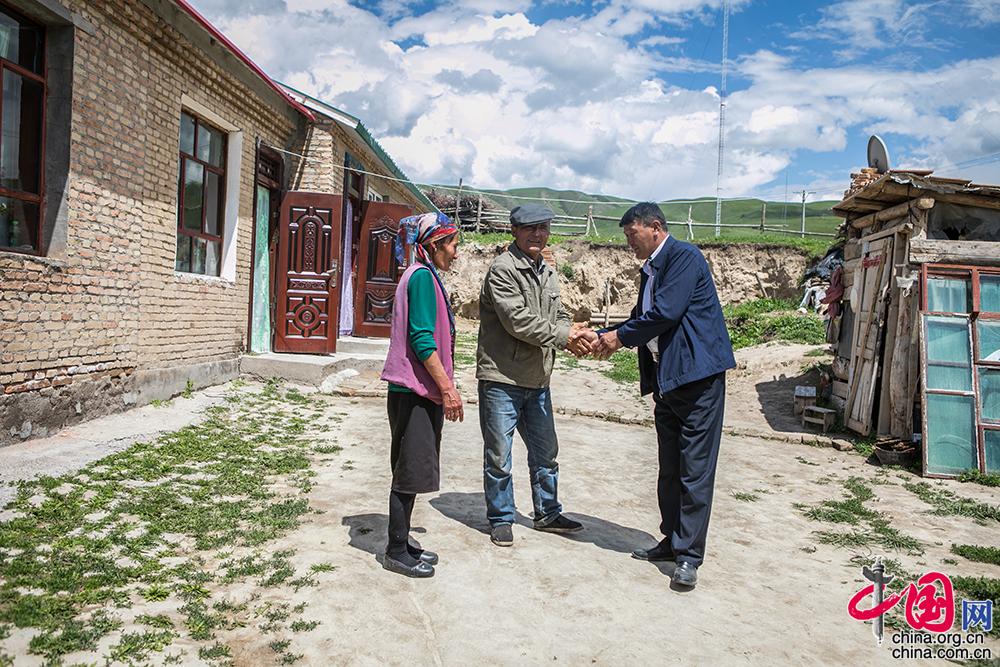 努尔江刚结婚时家里一穷二白,但他和妻子勤劳能干,借助团场出台的各种优惠政策,日子很快有了起色。目前,努尔江家有存栏牲畜800头(只),年收入10万元左右,成了远近闻名的富裕户。但他心里始终放不下那些有困难的人,无论是本团连队的牧工,还是附近乡村的牧民和林场的工人,谁家有困难,努尔江知道后总会想方设法的帮助。艾尔坎·艾外尔汗和别格孜牙·布拉汗夫妇住在努尔江家隔壁,以前家里只有两间土房,面积很小,住着一家四口人。艾尔坎天生言语残疾,工作不好找。家里牲畜只有一头牛,两三只羊。经济来源靠几只牲畜繁殖卖钱和低保。他们的小儿子患有言语残疾,为给孩子治病花了不少钱,更是雪上加霜。努尔江得知消息后,便逢年过节送去几百块钱,平时还送去面粉和清油,缓解艾尔坎一家生活窘境。中国网记者 伦晓璇 摄
