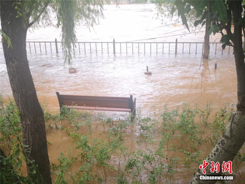 黄河兰州段水位持续上涨 河水淹到公园内座椅