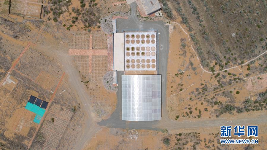 7月3日无人机拍摄的中国北方沙区水量平衡自动模拟监测系统—蒸渗仪群。 新华社发(杨昊天 摄)