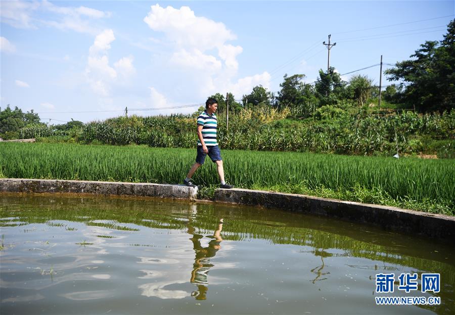 7月2日,周玉高在位于马灌镇果园村的水稻种植基地内巡视。