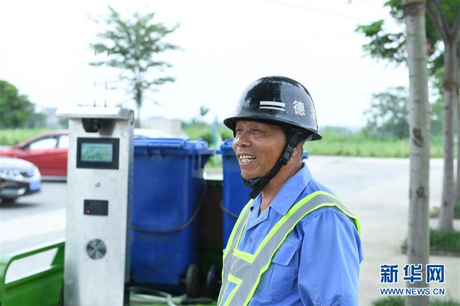 7月4日,浙江省德清县乾元镇易腐垃圾清运员丁掌良在介绍处理易腐垃圾情况。 2019年以来,浙江省德清县乾元镇坚持垃圾全程分类,完善生活垃圾分类投放、分类收集、分类运输、分类处置的全链条管理制度。乾元镇农村的易腐垃圾收集率稳步上升,高效实现垃圾减量化。 新华社记者 林善传 摄