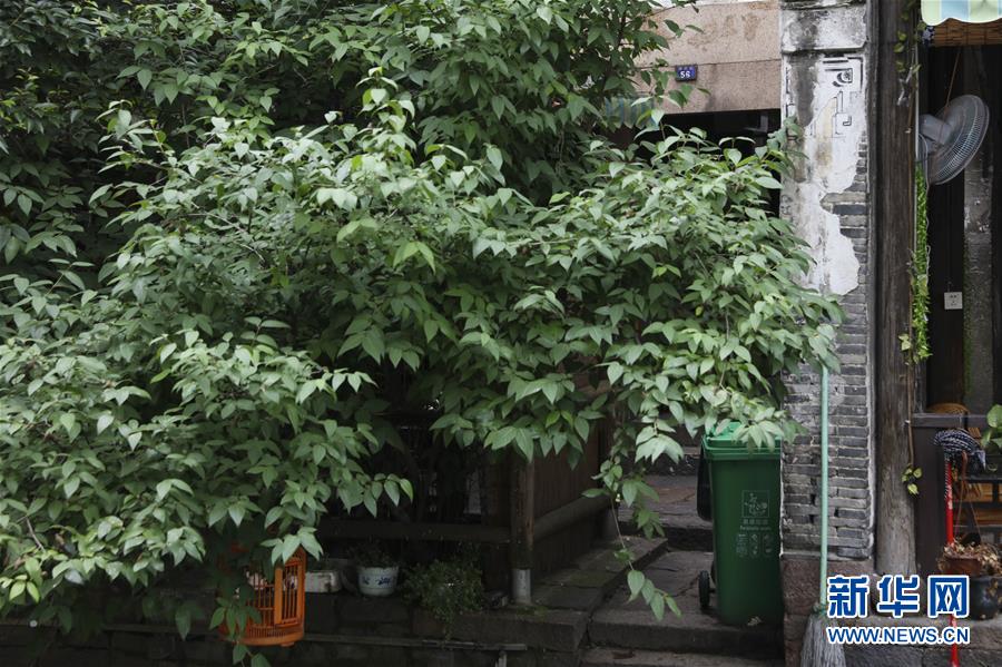 西河口56号当年是著名作家茅盾先生的姑妈家,青少年时期,茅盾经常到姑妈家来玩,对这里的生活非常了解,他的著名小说《林家铺子》就是描写九一八事变后,新市古镇上小生意人生活的艰辛(7月2日摄)。 新市古镇位于杭嘉湖平原腹地,德清、桐乡、余杭、湖州市区交界处,京杭大运河畔,是江南水乡古镇群中风貌保存较为完整、风俗民情富有特色的一个典型代表,是浙江省德清县的经济、文化重镇。新市古镇因水而生,因水而发展。在以舟楫为重要交通工具的时代,四乡物资集散于此,使得这里人丁兴旺、商贾四集,形成繁荣街市。一条与京杭大运河直接相通的市河环镇而流,其中1500余米市河河段上古老的明清河埠头、驳岸保存完好,花样繁多的拴缆石堪称江南一绝。 镇区内明清建筑鳞次栉比,街巷逶迤,家家临水,户户通舟。形成江南水乡古镇独特的“小桥、流水、人家”的“水乡泽国”的自然景观和“店宅合一”的商贸特征。新市保存风味独特的老宅有数十处,街道与街道之中有弄堂贯穿,弄内宅第优美典雅,古色古香,每条巷弄都有一个古老的故事,电影《林家铺子》《蚕花姑娘》中都留下了新市古弄和古桥的画面,一派水乡的原汁风味。 新华社记者 兰红光 摄