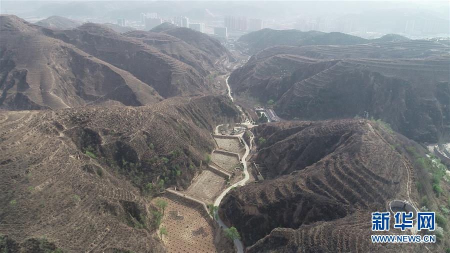这是4月18日无人机拍摄的陕西绥德水土保持科学试验站淤地坝建设成果(视频截图)。 新华社记者 张晟 摄