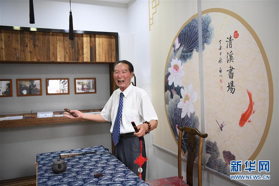 7月4日,德清县乾元镇传统民间曲艺三跳传承人闻永泉在表演中。 乾元镇是浙江德清县的古县城所在地,至今已有1300多年的历史。近年来,乾元镇在美丽城镇建设过程中充分发挥现有文史馆、图书馆、非遗馆等在文化传承方面的作用,丰富当地群众精神文化生活的同时,也让这个千年江南古镇焕发出勃勃生机。 新华社记者 林善传 摄