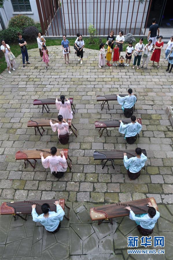 7月4日,几名小学生在德清县乾元镇非遗馆前弹古筝。 乾元镇是浙江德清县的古县城所在地,至今已有1300多年的历史。近年来,乾元镇在美丽城镇建设过程中充分发挥现有文史馆、图书馆、非遗馆等在文化传承方面的作用,丰富当地群众精神文化生活的同时,也让这个千年江南古镇焕发出勃勃生机。 新华社记者 韩传号 摄