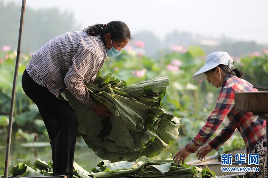 7月5日,在江苏省淮安市洪泽区高良涧街道一藕虾共养塘里,工人们在采摘荷叶。 炎炎夏日,江苏省淮安市洪泽区高良涧街道的藕塘种植户开始采摘荷叶,准备运往工厂加工成荷叶茶。近年来,当地推行“藕虾共养、荷花观赏、荷叶制茶”的种养模式,帮助藕塘种植户实现经济效益“多丰收”。 新华社发(万震 摄)