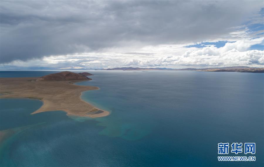 这是7月5日拍摄的纳木错风光(无人机拍摄)。 地处青藏高原腹心地带的纳木错,湖面海拔4718米,与羊卓雍错、玛旁雍错并称西藏三大“圣湖”。夏日时节,纳木错湖水碧蓝、波光粼粼,美如画卷。 新华社记者 李鑫 摄