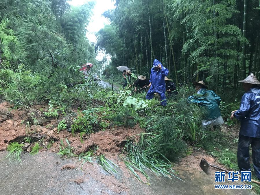 7月7日,工作人员在江西省抚州市黎川县熊村镇抢修受影响的道路(手机拍摄)。 记者7月7日从江西省防汛抗旱指挥部了解到,7月3日下午开始的降雨过程已经造成南昌、九江、上饶、抚州、景德镇等地的22.8万人受灾,紧急转移安置6351人,需紧急生活救助3746人,倒塌房屋49间。 新华社发