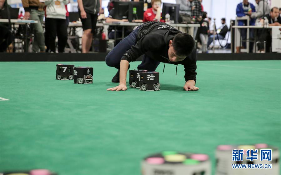 7月7日,在澳大利亚悉尼,浙江大学队学生在比赛间隙调试机器人。 2019年机器人世界杯正在澳大利亚悉尼举行,浙江大学派出的队伍7日在机器人足球小型组决赛中获胜,蝉联这一组别冠军。据了解,今年是浙江大学第四次夺得机器人足球小型组的冠军。 新华社记者 白雪飞 摄