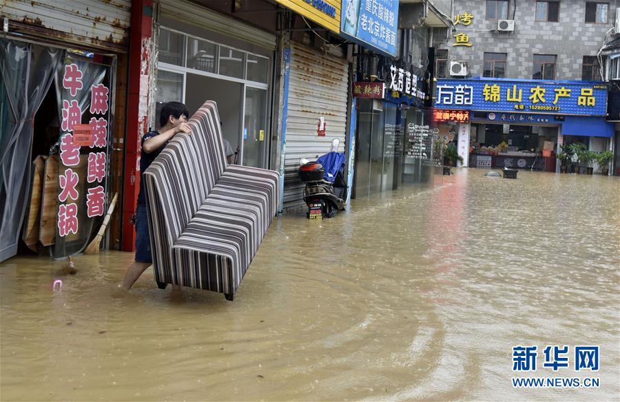 7月7日,在福建省三明市泰宁县,一名男子在转移店铺里的物品。 7月3日至7日,福建省经历了一轮连续强降雨。预计7至11日,福建西部、北部地区仍有持续性降雨过程,并伴有强对流天气。目前,当地正在积极采取措施应对洪涝及次生灾害。 新华社发(邱灿旺 摄)