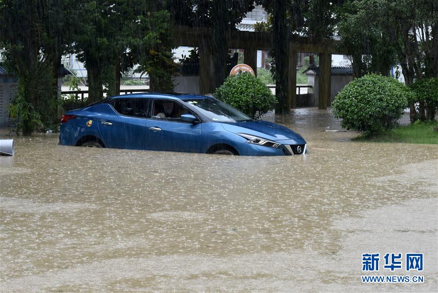 7月7日,在福建省三明市泰宁县,一辆汽车浸泡在积水中。 7月3日至7日,福建省经历了一轮连续强降雨。预计7至11日,福建西部、北部地区仍有持续性降雨过程,并伴有强对流天气。目前,当地正在积极采取措施应对洪涝及次生灾害。 新华社发(邱灿旺 摄)