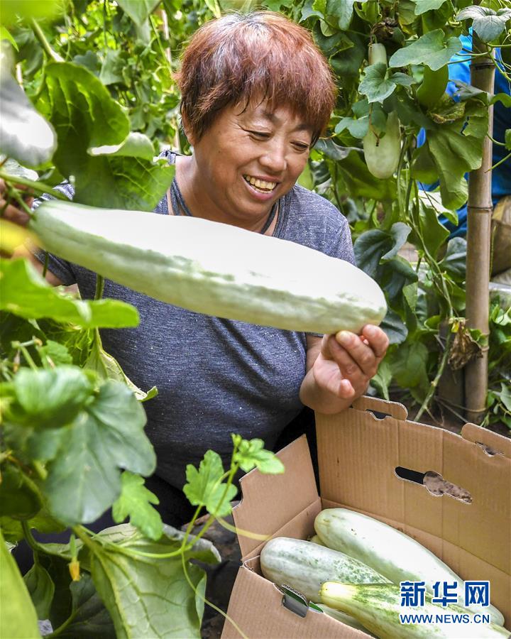 7月8日,河北省阜城县建桥乡东高村瓜农在采摘羊角脆甜瓜。新华社记者 李晓果 摄