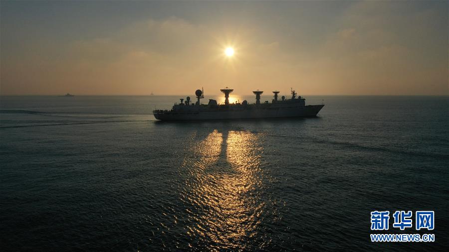 远望3号船在长江入海口锚地(7月5日无人机拍摄)。 新华社记者 李雨泽 摄
