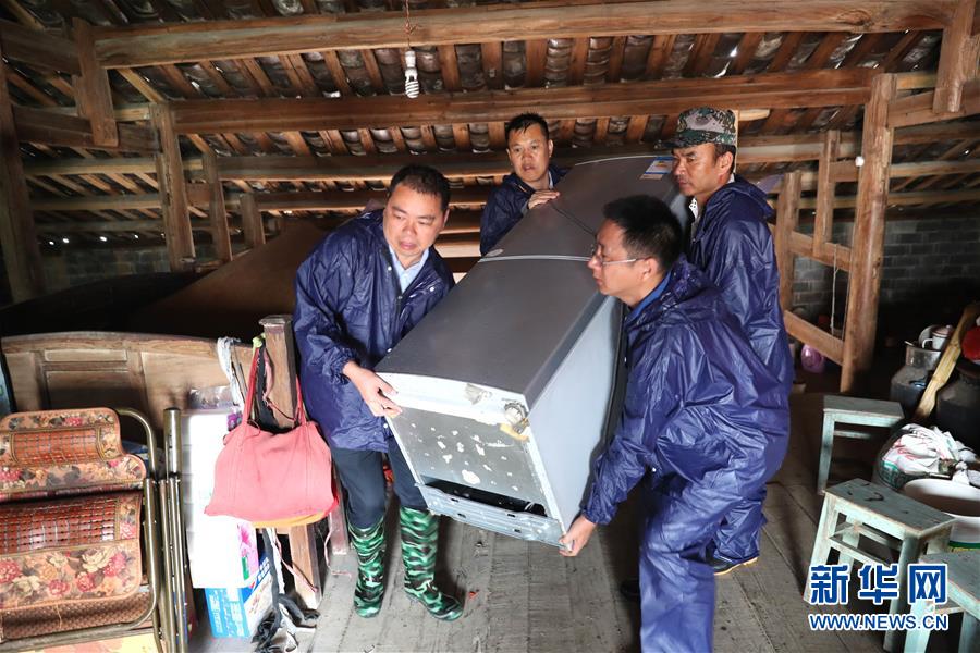 在江西省抚州市东乡区马圩镇桥西村,救援人员为受困群众转移物资(7月8日摄)。 连日来,江西省抚州市东乡区遭强降雨袭击,多个乡镇出现大范围积水内涝,部分乡村道路、农作物被淹。针对汛情,当地积极开展各项抢险救援工作。 新华社发(何江华摄)
