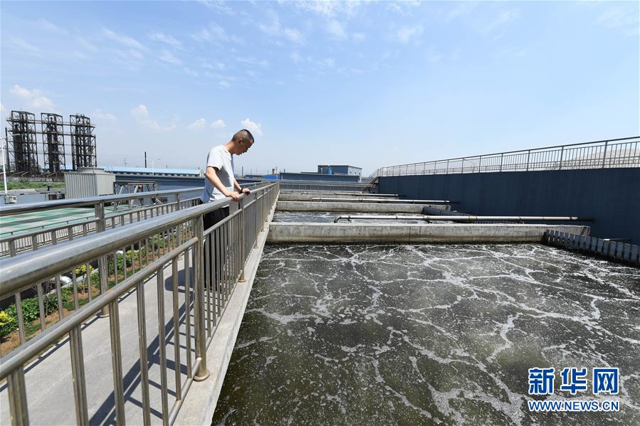 7月2日,在山西上德水务有限公司,副总经理马强景在曝气生物滤池前观测污水处理情况。新华社记者 杨晨光 摄
