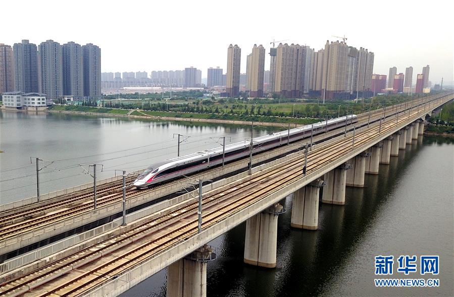 7月9日,一列复兴号动车组列车行驶在陕西西安市境内(无人机拍摄)。 新华社发(唐振江摄)
