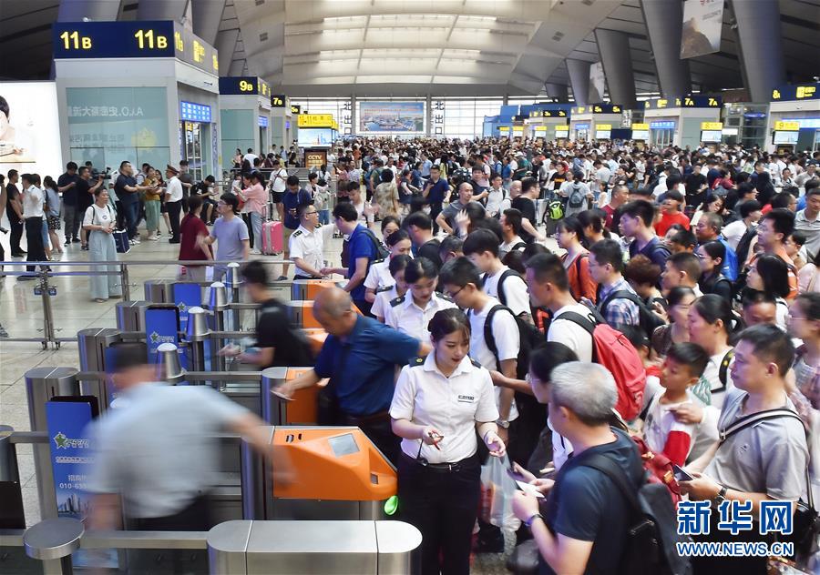 7月9日,旅客在北京南站候车大厅验票乘车。新华社发(杨宝森摄)
