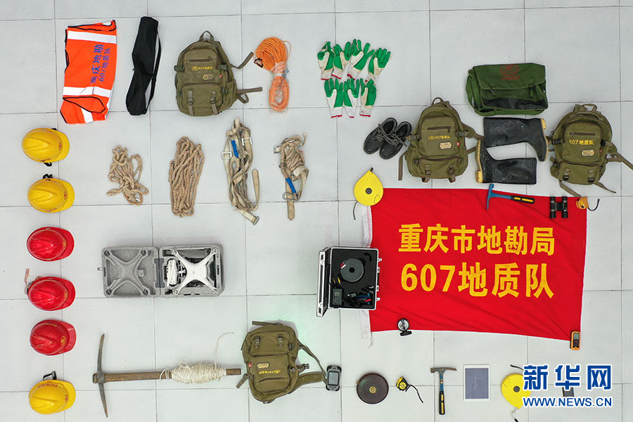 罗盘、地质锤、放大镜,是地质“三宝”。除了这“三宝”,安全绳、安全帽也是必不可少的装备。无人机等高科技装备,则大大提升了地质队员们的工作效率。新华网发(郭旭 摄)