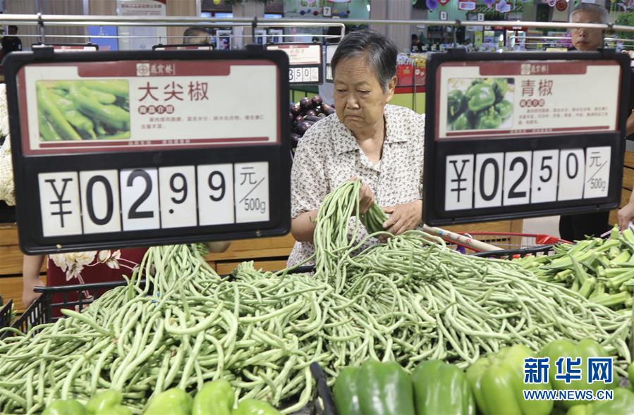7月10日,顾客在河北省邯郸市复兴路一家超市选购蔬菜。 当日,国家统计局发布数据,6月份,全国居民消费价格(CPI)同比上涨2.7%。上半年,CPI比去年同期上涨2.2%。 新华社发(王九忠摄)