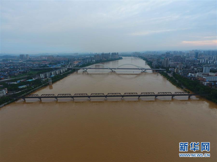 7月10日无人机拍摄的柳州柳江江面。 受近日持续强降雨影响,广西柳州市区柳江水位快速上涨。7月10日3时45分,柳江柳州水文站出现83.26米的洪峰水位,超过警戒水位0.76米。这是柳江今年首个超警戒水位洪峰,柳州市区部分沿江低洼地带出现积水。 新华社记者 卢羡婷 摄
