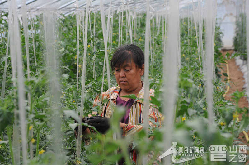 7月3日,左权县桐峪镇下武村,脱贫致富带头人张建霞承包的蔬菜大棚里,村里的贫困户正在劳动。近年来,村里56岁的农妇张建霞成为了脱贫致富的带头人,她通过承包大棚、核桃园、饲养生猪等,不仅自己脱了贫致了富,更是带动了村里20多户贫困户实现了脱贫。目前,张建霞一共承包了80多亩核桃园,养了80多头猪,还承包了30多亩蔬菜大棚,带领乡亲们脱贫致富奔小康的路子越走越坚定。记者侯津刚摄。