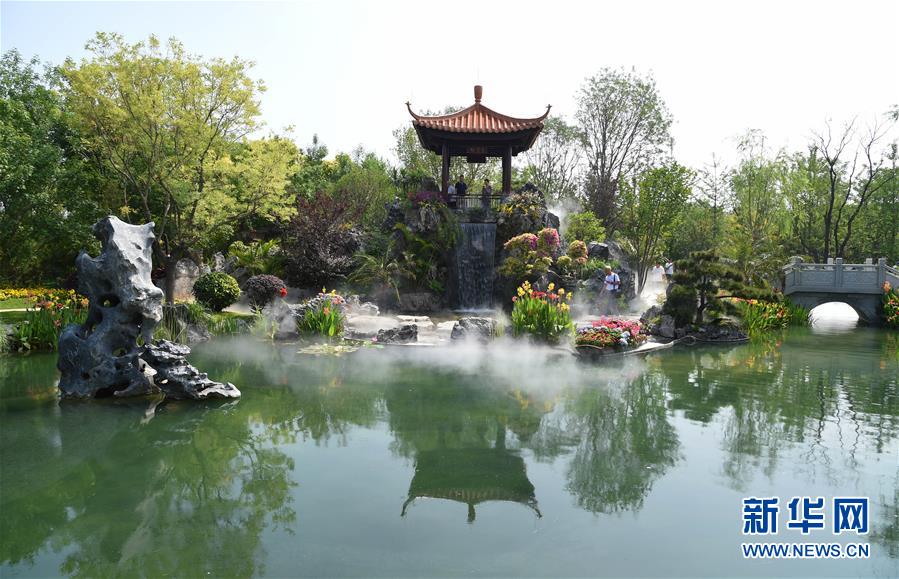 7月11日,游客在南粤园参观。 当日,2019年中国北京世界园艺博览会“广东日”活动在北京世园会园区举行。 新华社发(任超摄)
