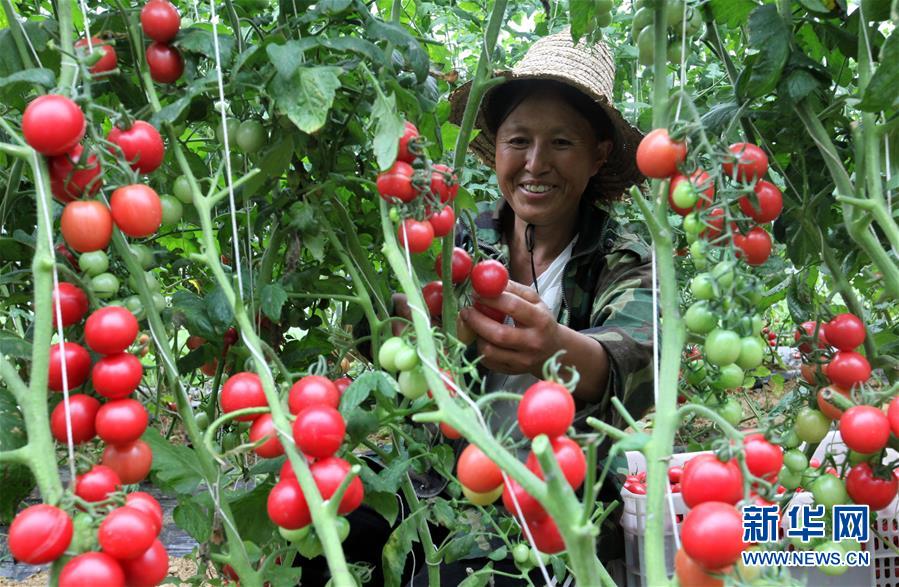 7月11日,在贵州省毕节市黔西县中建乡民主村圣女果种植基地,村民在采摘圣女果。 新华社发(史开心 摄)