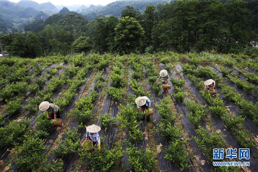 7月11日,村民在重庆市黔江区邻鄂镇五马顶社区藤茶基地采摘藤茶。 新华社发(杨敏 摄)