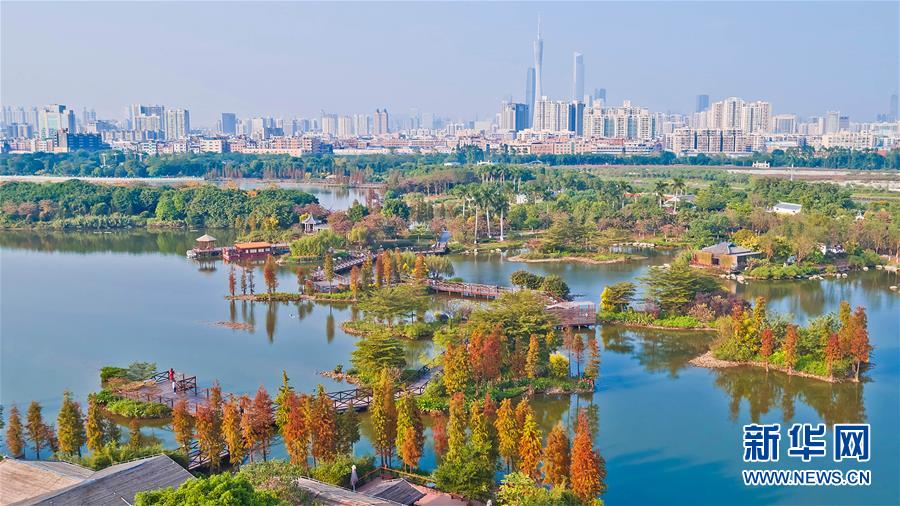 这是广州海珠湿地海珠湖一角(2017年1月9日无人机拍摄)。 新华社发(谢惠强 摄)