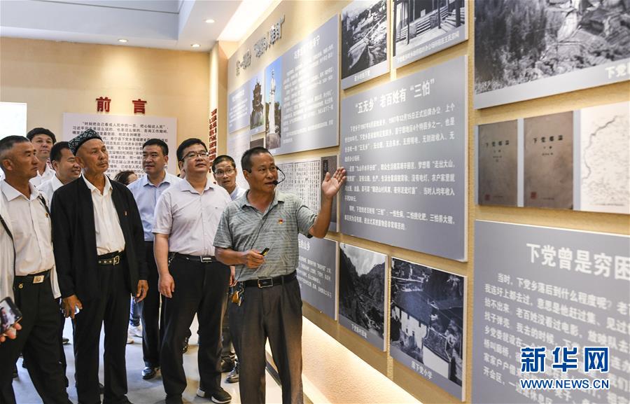 在福建省宁德市寿宁县下党乡下党村,新疆呼图壁县二十里店镇二十里店村村民代表在下党村“党性教育教学基地”参观(6月14日摄)。新华社记者 王菲 摄