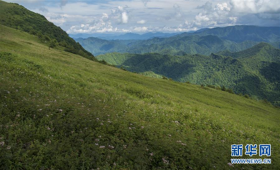 这是7月12日拍摄的留坝县紫柏山风景区开满鲜花的草甸。 陕西紫柏山国家森林公园位于留坝县境内,因山上古树多紫柏而得名。七月的紫柏山,处处山花烂漫,一步一景,一望无边的高山草甸与变幻无穷的蓝天白云相映成趣,成为游人消夏的好去处。 新华社记者 陶明 摄