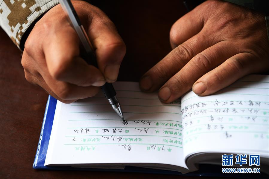 7月12日,和小弘在管护站内填写巡山记录。 新华社记者 杨晨光 摄