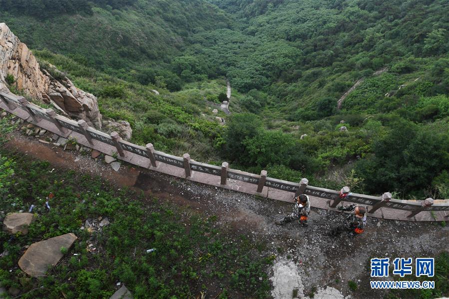 7月12日,和小弘(左)和护林员林中奎(右)在发鸠山上巡查。 新华社记者 杨晨光 摄