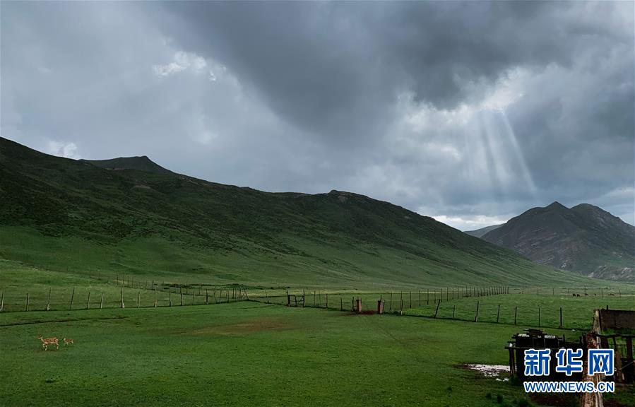 7月12日拍摄的青海省祁连县境内一处鹿场(手机拍摄)。 新华社记者 吴刚 摄