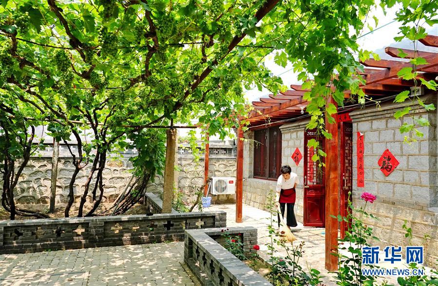 7月12日,昌黎县昌黎镇五里营村的魏丽静在打扫民宿庭院。 近年来,“葡萄之乡”河北省昌黎县为更好地推进全域旅游发展和乡村振兴,通过引进社会资金,对当地葡萄沟乡村旅游区的老建筑进行修复,并引进星级酒店进行内部软装,示范带动当地民宿提档升级,促进乡村旅游快速发展。据了解,目前该县有精品民宿20余家,大众民宿300余家,民宿行业年营业收入3亿多元。 新华社记者 杨世尧 摄