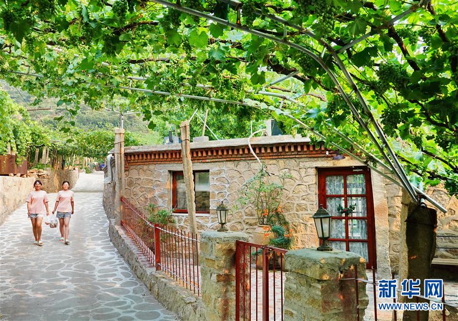 7月12日,两名女孩从昌黎县一家民宿旁走过。 近年来,“葡萄之乡”河北省昌黎县为更好地推进全域旅游发展和乡村振兴,通过引进社会资金,对当地葡萄沟乡村旅游区的老建筑进行修复,并引进星级酒店进行内部软装,示范带动当地民宿提档升级,促进乡村旅游快速发展。据了解,目前该县有精品民宿20余家,大众民宿300余家,民宿行业年营业收入3亿多元。 新华社记者 杨世尧 摄