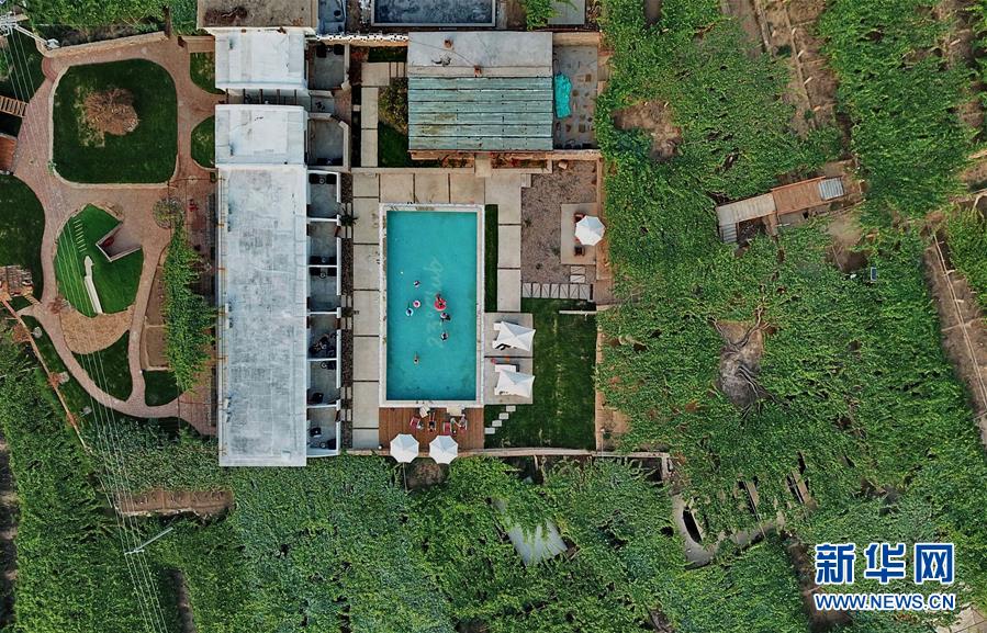 这是7月12日无人机拍摄的昌黎县一家民宿。 近年来,“葡萄之乡”河北省昌黎县为更好地推进全域旅游发展和乡村振兴,通过引进社会资金,对当地葡萄沟乡村旅游区的老建筑进行修复,并引进星级酒店进行内部软装,示范带动当地民宿提档升级,促进乡村旅游快速发展。据了解,目前该县有精品民宿20余家,大众民宿300余家,民宿行业年营业收入3亿多元。 新华社记者 杨世尧 摄