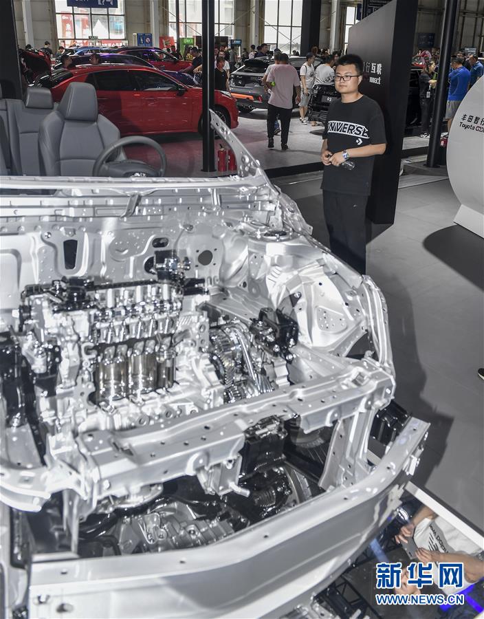 7月13日,参观者在长春汽博会现场观看一台被“解剖”的汽车。 当日,在吉林长春举行的第十六届中国(长春)国际汽车博览会上,不少参展商将车辆“解剖”展出,让参观者更直观地了解汽车内部构造。 新华社记者 许畅 摄