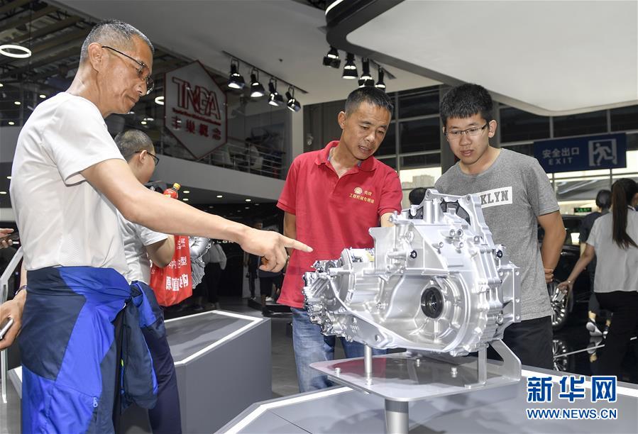 7月13日,参观者在长春汽博会现场观察一台展出的汽车自动变速箱。 当日,在吉林长春举行的第十六届中国(长春)国际汽车博览会上,不少参展商将车辆“解剖”展出,让参观者更直观地了解汽车内部构造。 新华社记者 许畅 摄