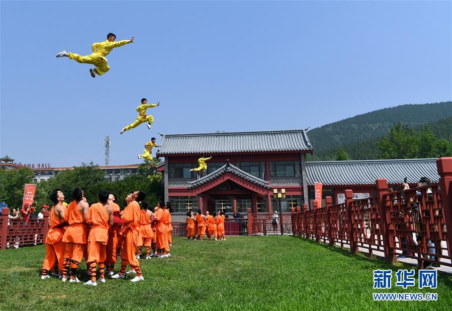 7月13日,演员在2019嵩山少林武林大会开幕式上表演。 当日,2019嵩山少林武林大会在河南登封嵩山少林景区开幕,本次大会将持续至8月31日。 新华社记者 李嘉南 摄