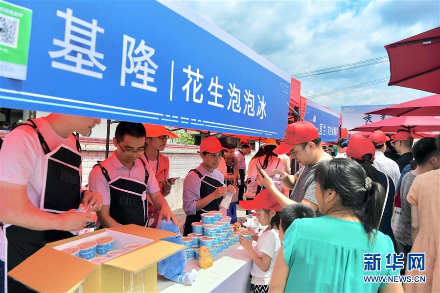 7月13日,人们在首届两岸花生节上购买台湾食品。新华社记者 姜克红 摄